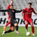 El delantero colombiano celebró un tanto en el partido contra el Omonia de este jueves.
